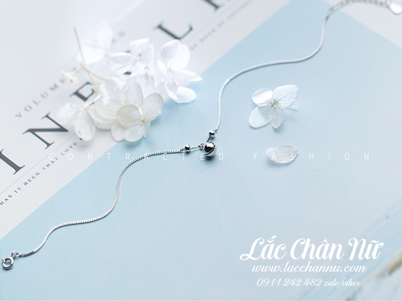 - Tên: Lắc chân bạc nữ bi tròn chuông đơn giản LCBN153