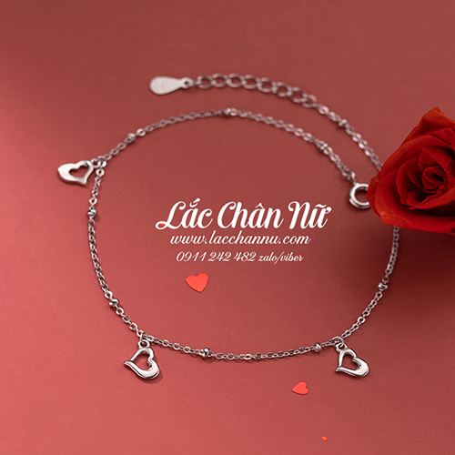 - Tên: Lắc chân bạc nữ cao cấp ba trái tim đẹp LCBN248