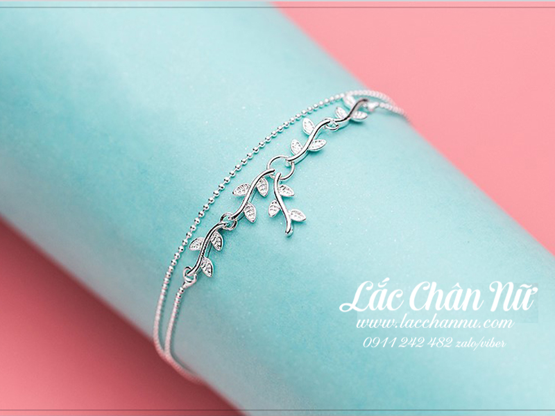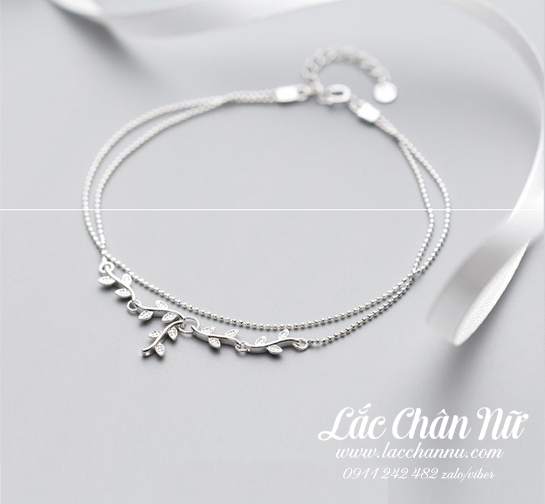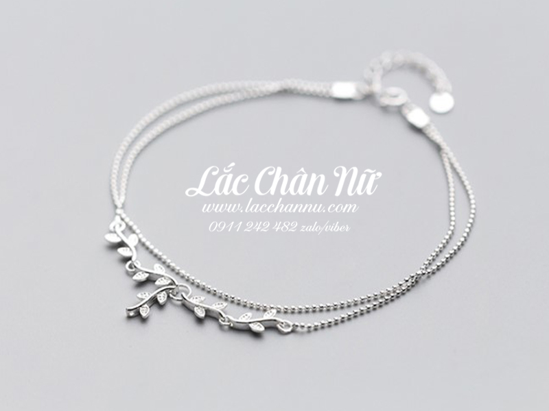 Lắc chân bạc nữ cao cấp dây đôi nhánh lá nhẹ nhàng LCBN99