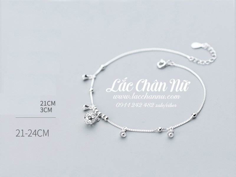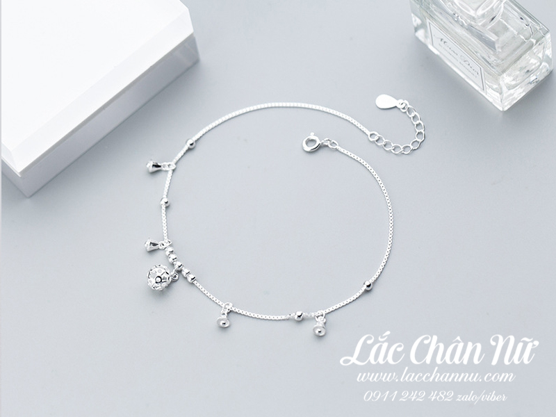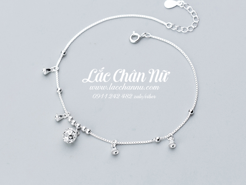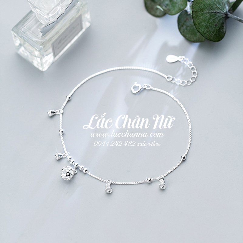 - Tên: Lắc chân bạc nữ cao cấp hạt chân châu và chuông cá tính LCBN121