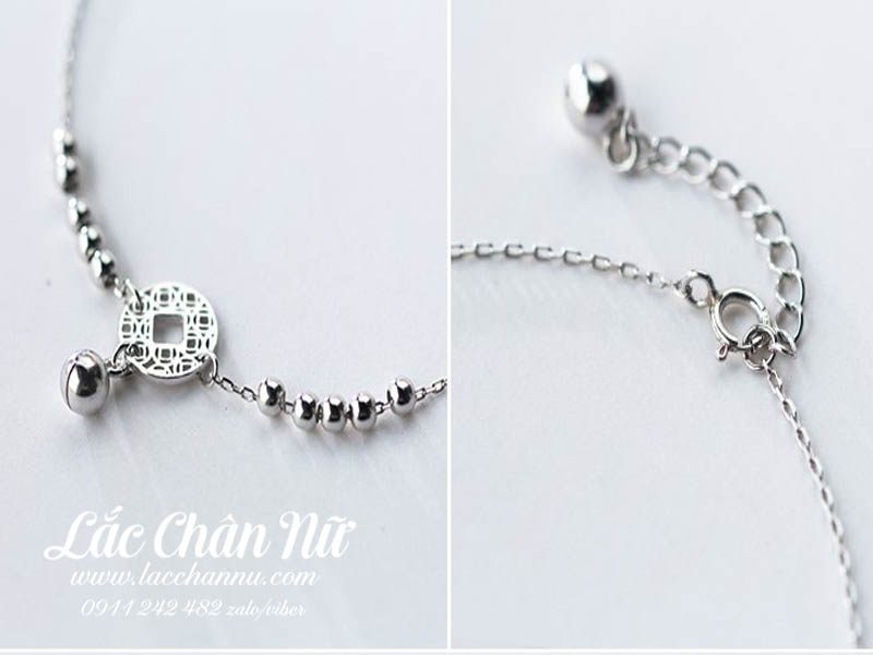 - Tên: Lắc chân bạc nữ cao cấp hình đồng xu có chuông cá tính LCBN178