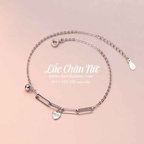 - Tên: Lắc chân bạc nữ cao cấp hình trái tim cá tính LCBN249