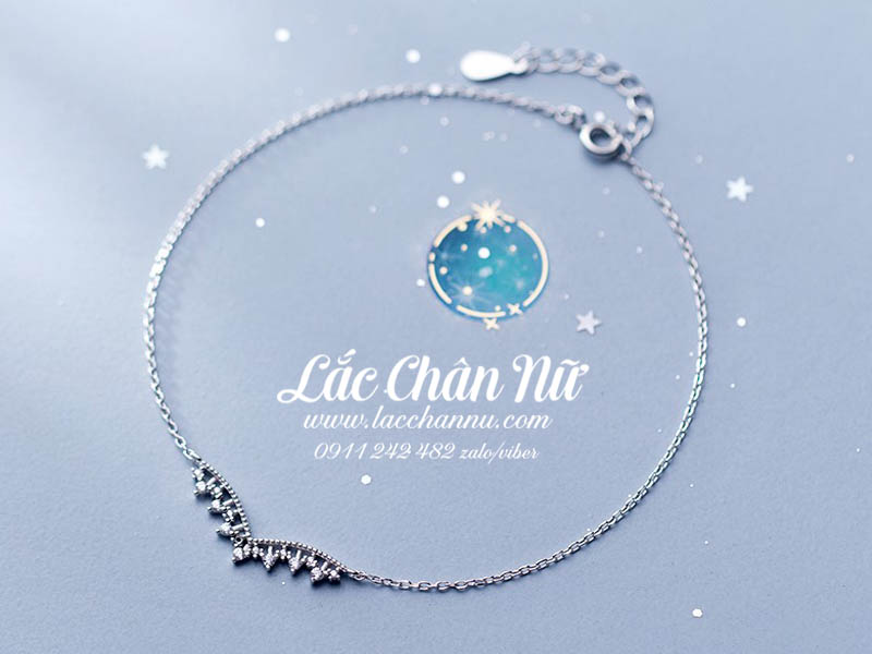 Lắc chân bạc nữ cao cấp hình vương niệm sang chảnh LCBN180