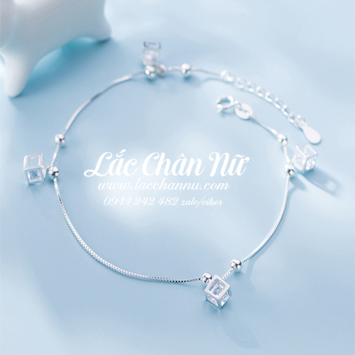 Lắc chân bạc nữ cao cấp khối vuông cá tính LCBN218