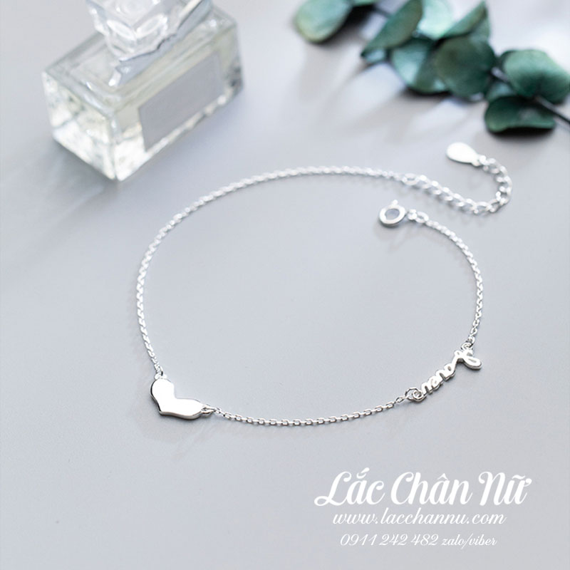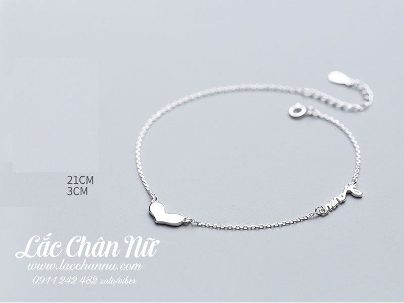 Lắc chân bạc nữ cao cấp trái tim Lovely dịu dàng LCBN135