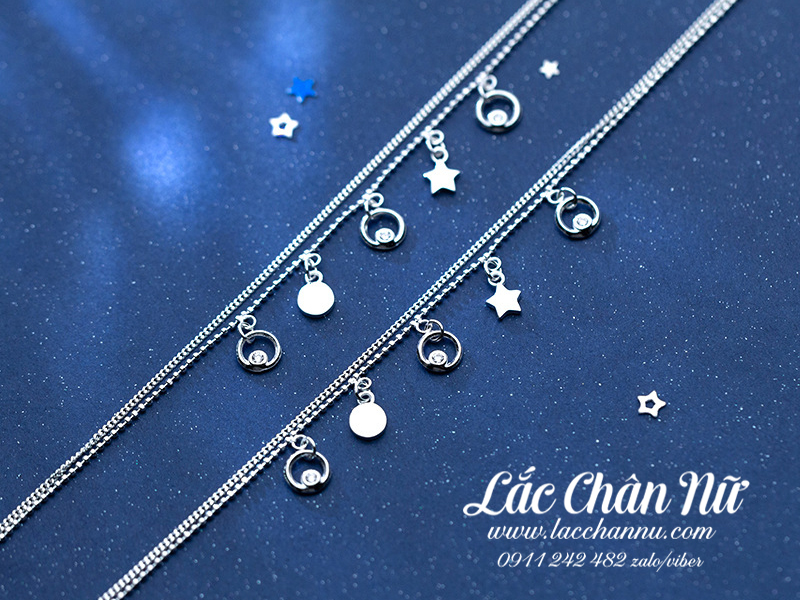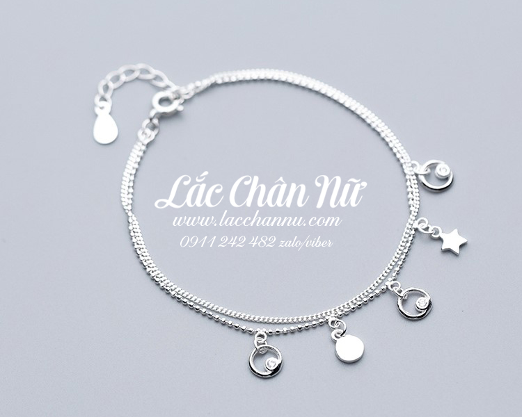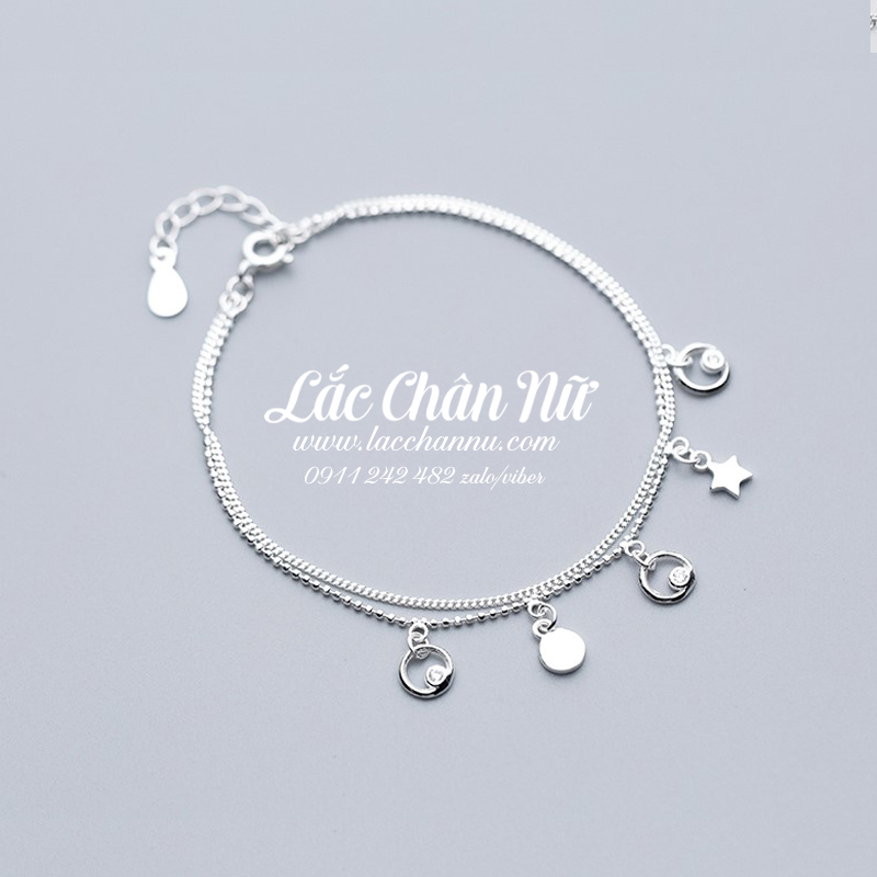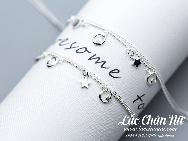 - Tên: Lắc chân bạc nữ dây đôi ngôi sao cá tính LCBN155