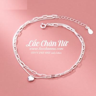 - Tên: Lắc chân bạc nữ dây đôi trái tim LCBN272