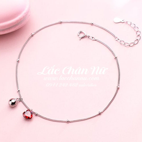 - Tên: Lắc chân bạc nữ dây đơn trái tim đá đỏ may mắn LCBN209