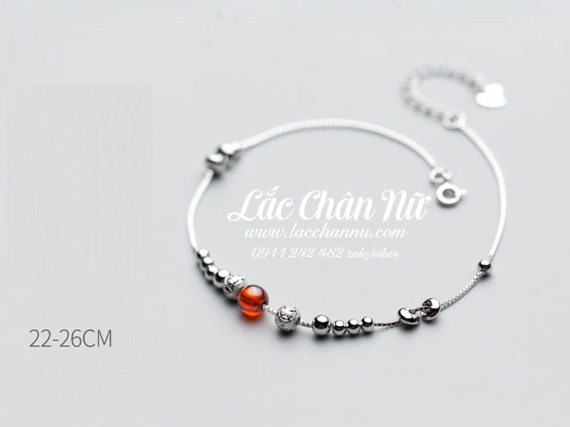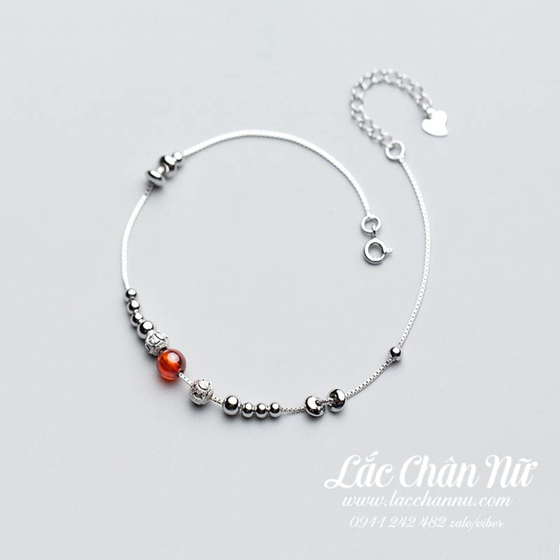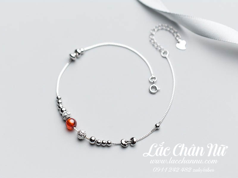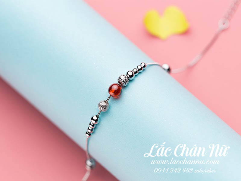 - Tên: Lắc chân bạc nữ hạt charm đỏ may mắn LCBN174