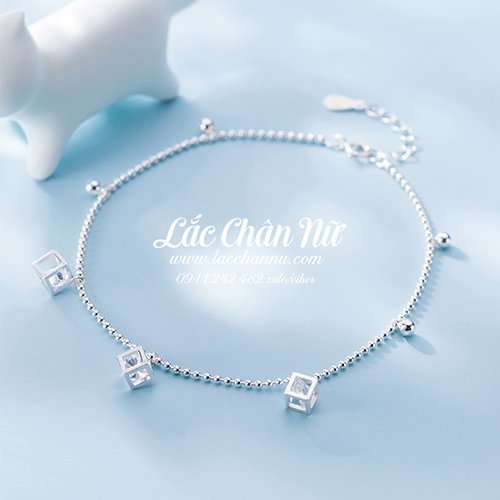 - Tên: Lắc chân bạc nữ hình lập phương đính đá LCBN244