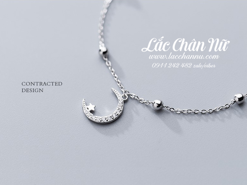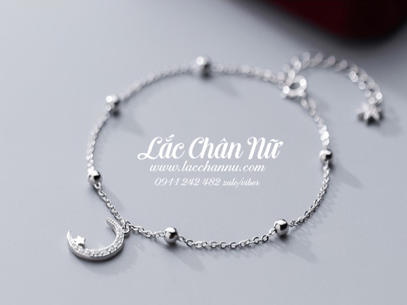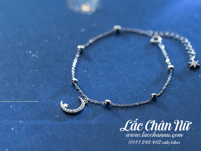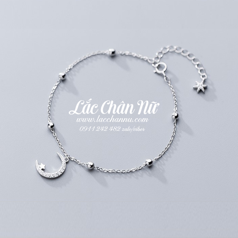 - Tên: Lắc chân bạc nữ hình vầng trăng ngôi sao đính đá sang chảnh LCBN144