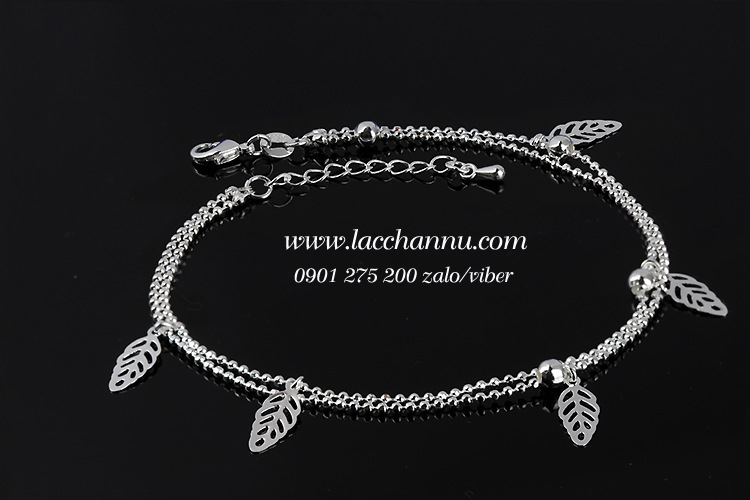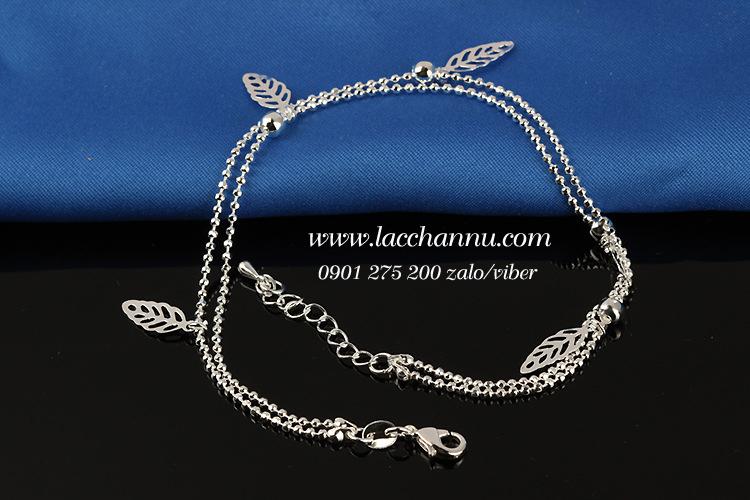 Lắc chân nữ bạc và hợp kim dây đôi hình chiếc lá LCNU06